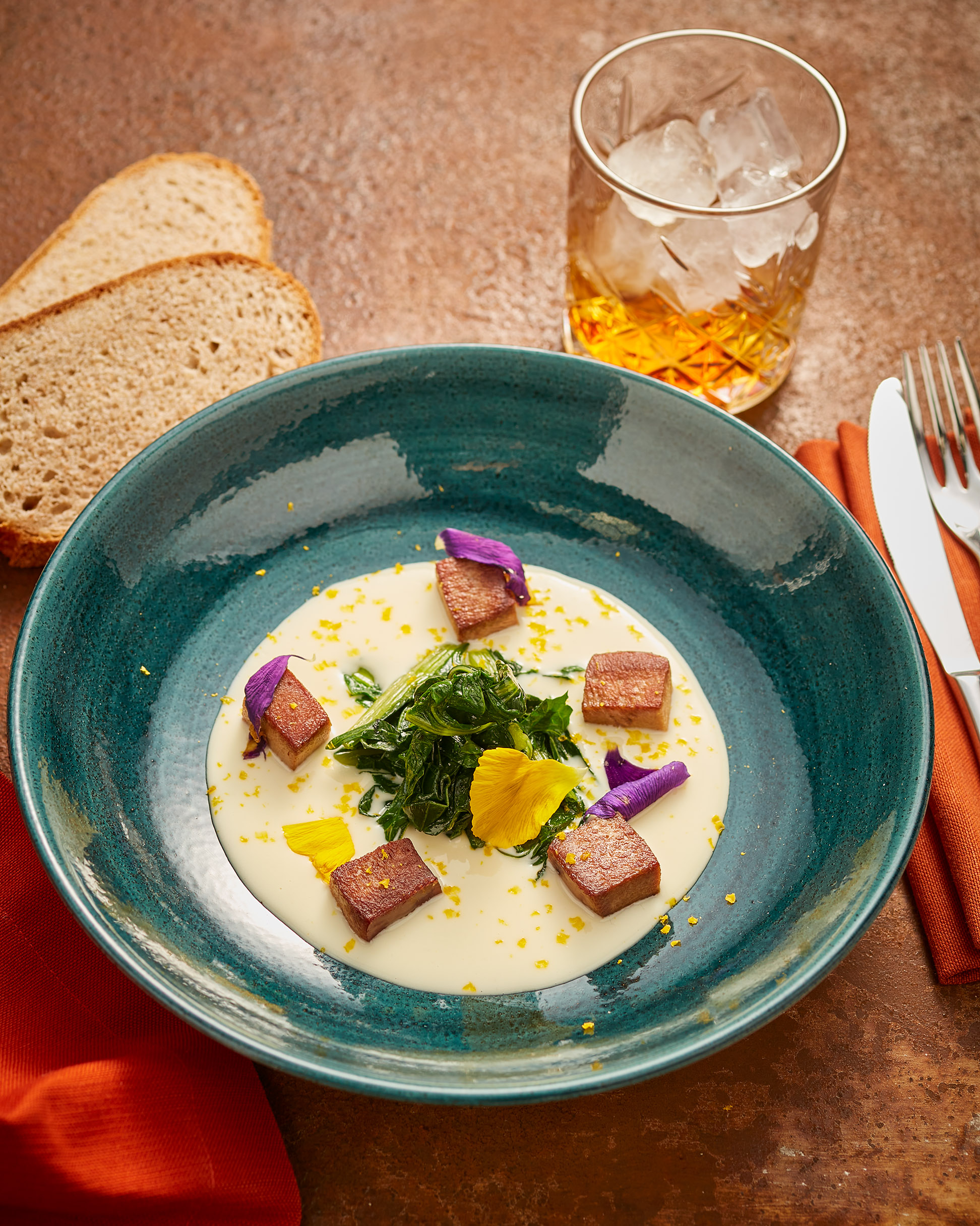 Materie prime di qualità e ingredienti semplici e di stagione per piatti di carne, di pesce e vegetariani.